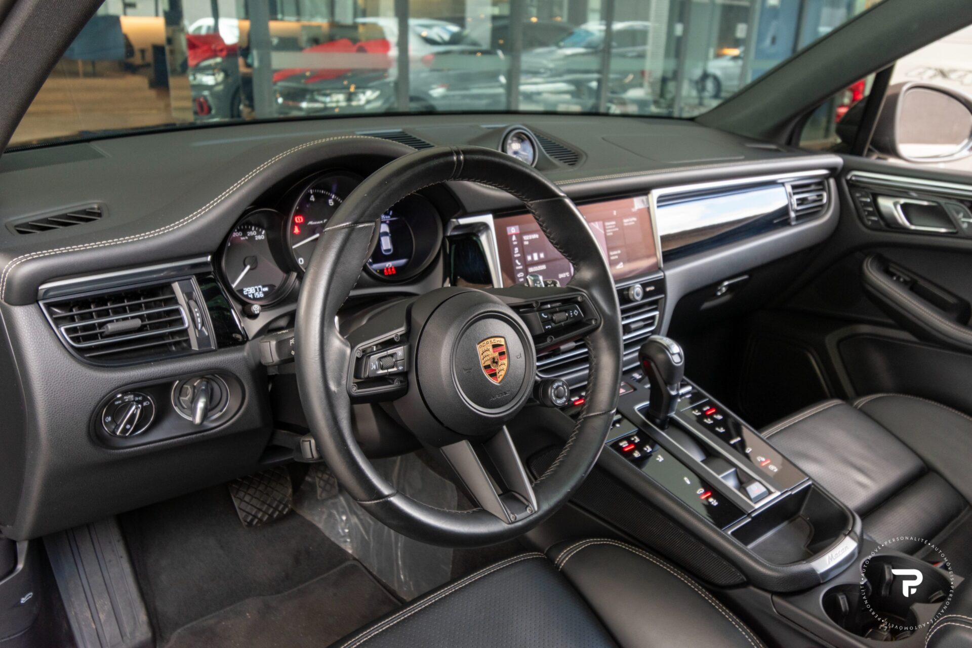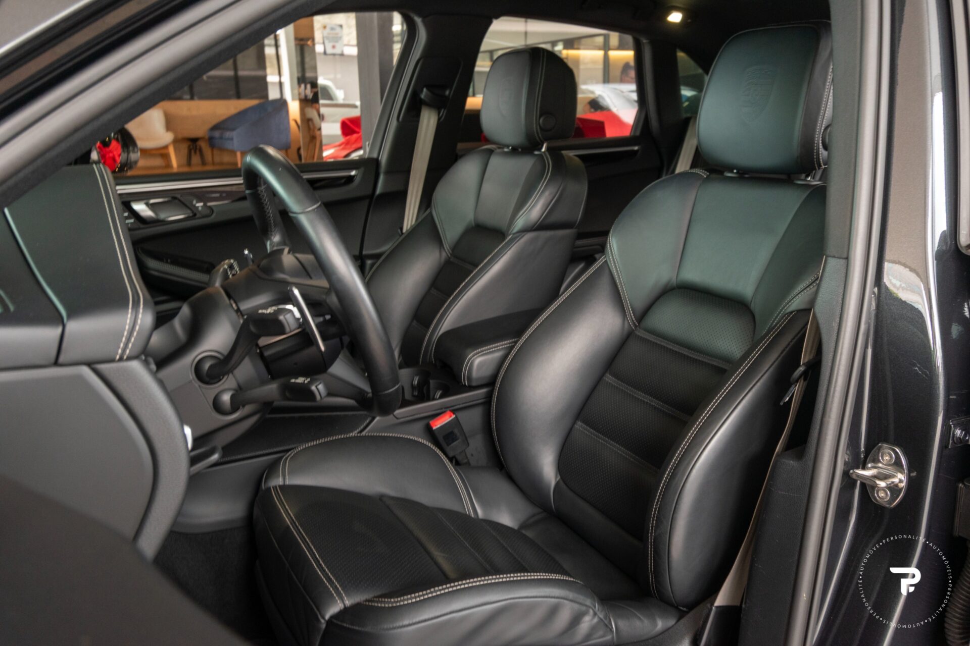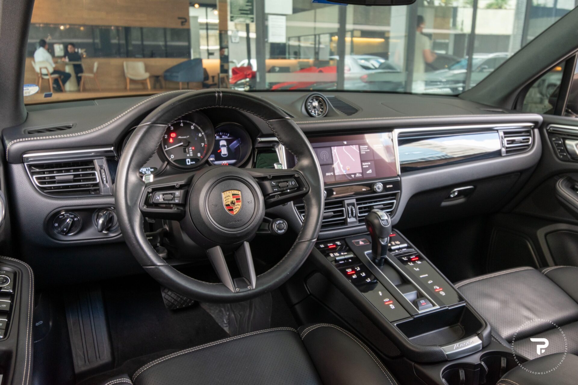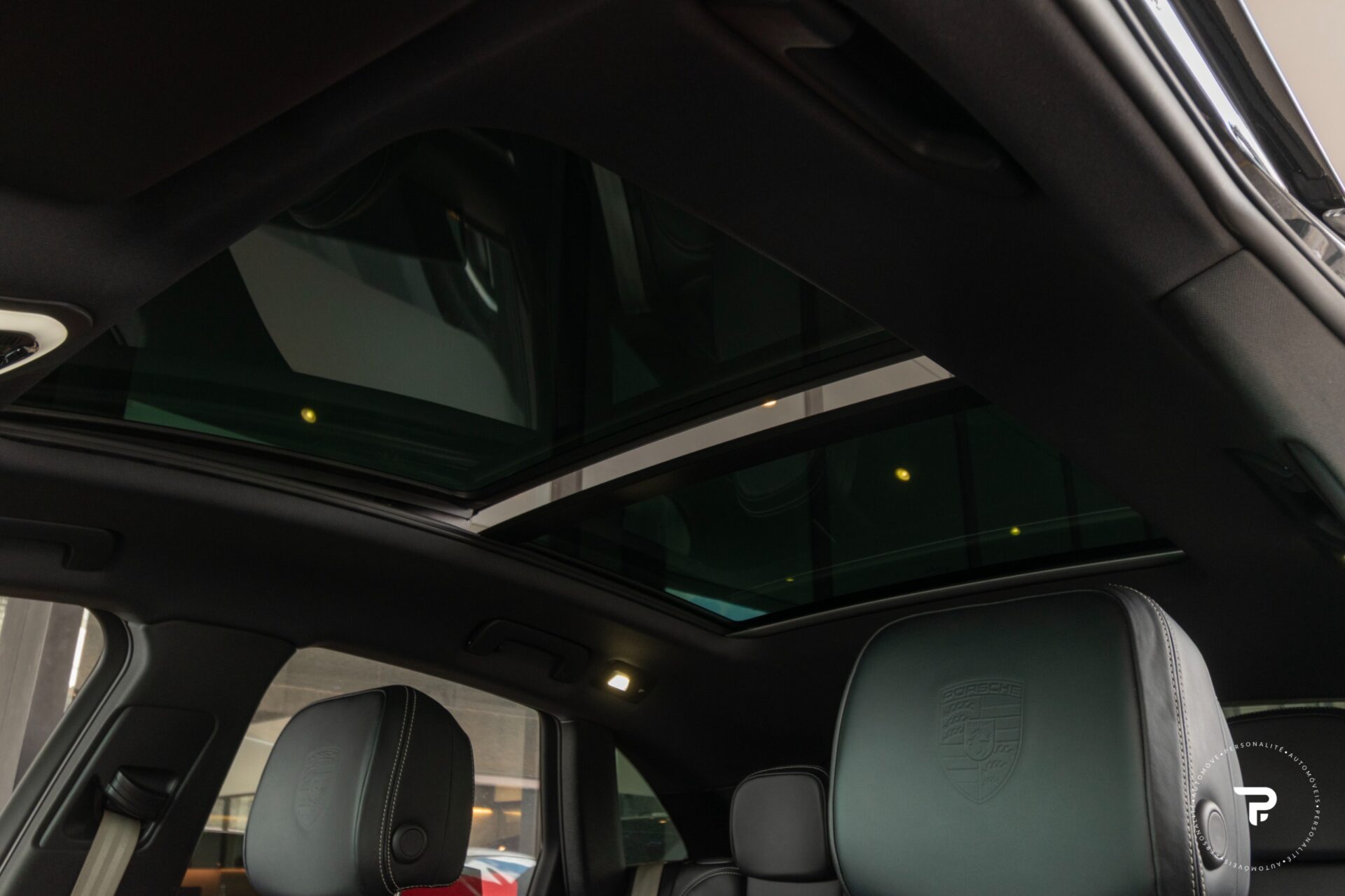 Escudo da Porsche nos encostos de cabeça dianteiros